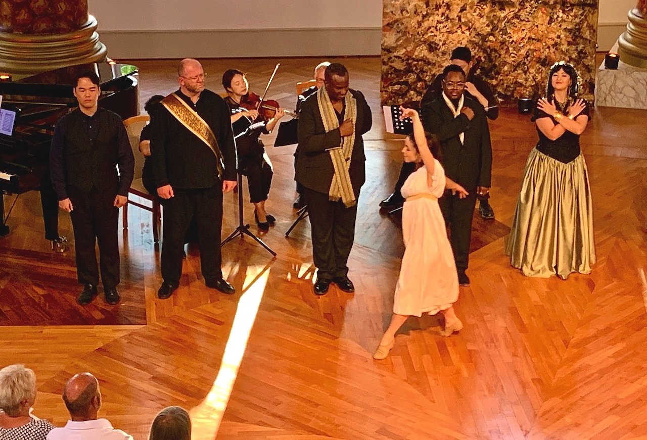 Die junge Erzählerin Luisa Klidis bereitete das Publikum auf die einzelnen Szenen vor, die vom Ensemble in künstlerischer Perfektion dargeboten wurden. Es ist dabei niemand der Protagonisten einzeln hervorzuheben, weil sie alle das Publikum in ihren Bann zu schlagen vermochten und eine hochemotionale Atmosphäre erzeugten. Der Radamis von Marvin Scott interpretiert, die Aida von Carla Antunes, Asena Aktop in der Rolle der Amneris, Kevin Moreno als Amonasro, König von Ägypten sowie Yavor Genchev als Oberpriester Ramphis, Wonjun Joo als Priester und Bote und die bezaubernd tanzende Irene Lopez Ros als Sklavin bzw. Göttin konnten ihr ganzes Talent entfalten.