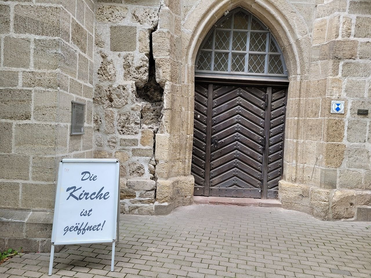 "War das schon immer so?" oder "Bleibt das jetzt immer so?" - so fragen gerade viele Gäste oder Passanten angesichts des klaffenden Risses neben der Eingangstür an der Blasiikirche in Nordhausen. Droht die Kirche zu zerfallen? Nein, gibt der Kirchenkreis Entwarnung, die Fachleute sind bereits am Werk...