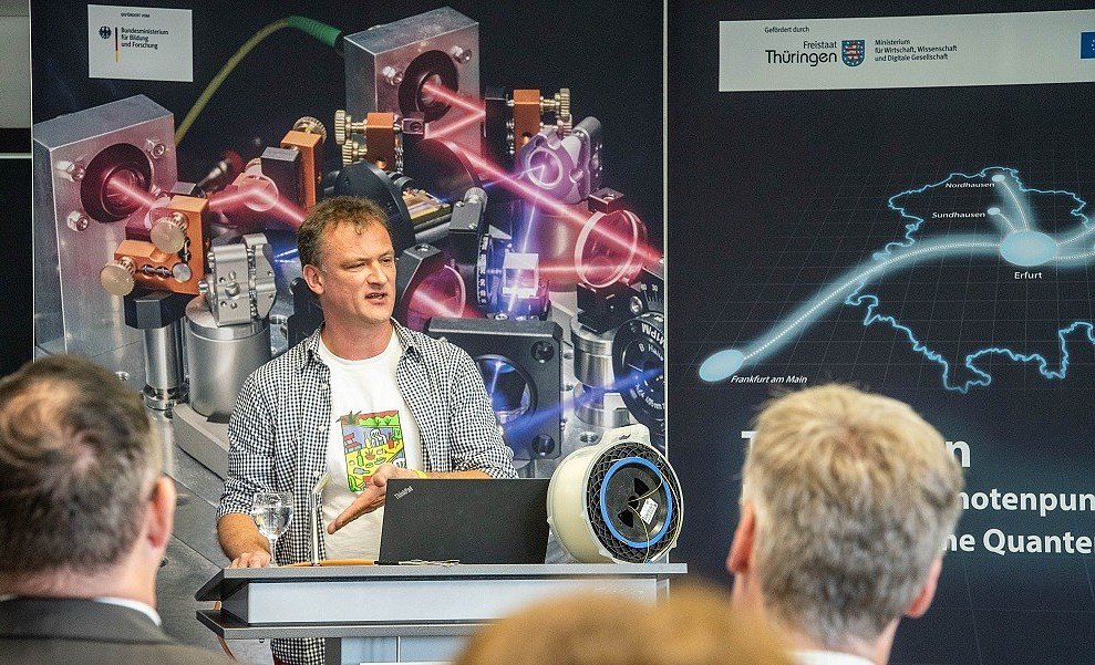 Mit Mitteln des Landes wurde bereits eine Glasfaser-Teststrecke zwischen dem Fraunhofer-Institut für Angewandte Optik und Feinmechanik IOF in Jena und dem Fraunhofer-Zentrum in Erfurt etabliert. Hier wurden auf einer Distanz von 75 Kilometern – im Rahmen der durch das Bundesministerium für Bildung und Forschung (BMBF) geförderten Initiative QuNET – bereits erfolgreich Quantenschlüssel zwischen den Thüringer Metropolstädten ausgetauscht.