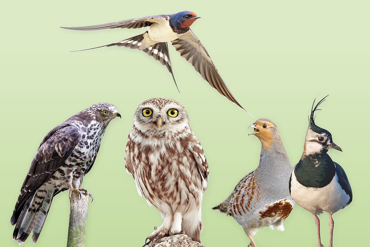 Wählen Sie den Vogel des Jahres 2024 (Foto: Bildautoren (v.l.n.r.): Marcus Bosch, M. Schäf, M. Schäf, Willi Rolfes, Hans Clausen/LBV.)
