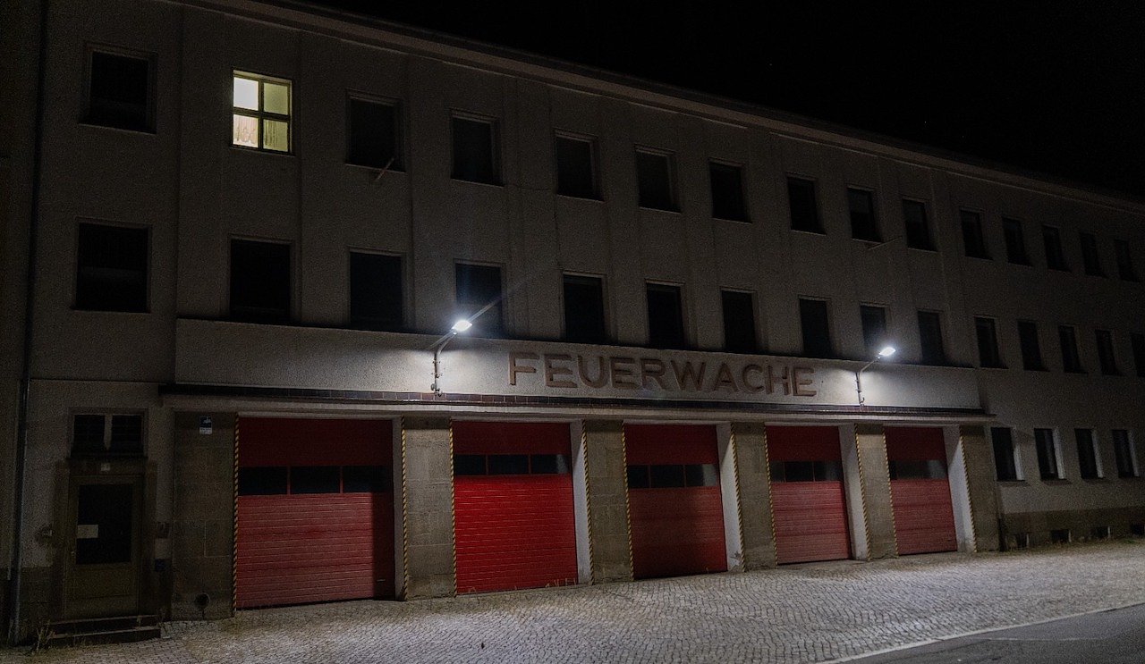 Doch auch Anfang letzter Woche war ein Raum im zweiten Stockwerk immer noch hell erleuchtet. Oder schon wieder? Die Lichter in der Halle und im ersten Stock brennen jedoch nicht mehr. Ob sie ausgeschaltet wurden oder nach den vielen Tagen und Nächten Arbeit seit März einfach den Dienst quittiert haben, liegt nun im Dunkeln. Oben aber brennt noch Licht in einem einsamen Zimmer. Wer dort die Wacht hält im leeren Gebäude, konnte unser Leser nicht herausfinden. Hereinngetraut hat er sich allerdings auch nicht. Wäre wohl auch Hausfriedensbruch. Und wer weiß, welcher Geist der alten Feuerwache dort die Stellung hält?