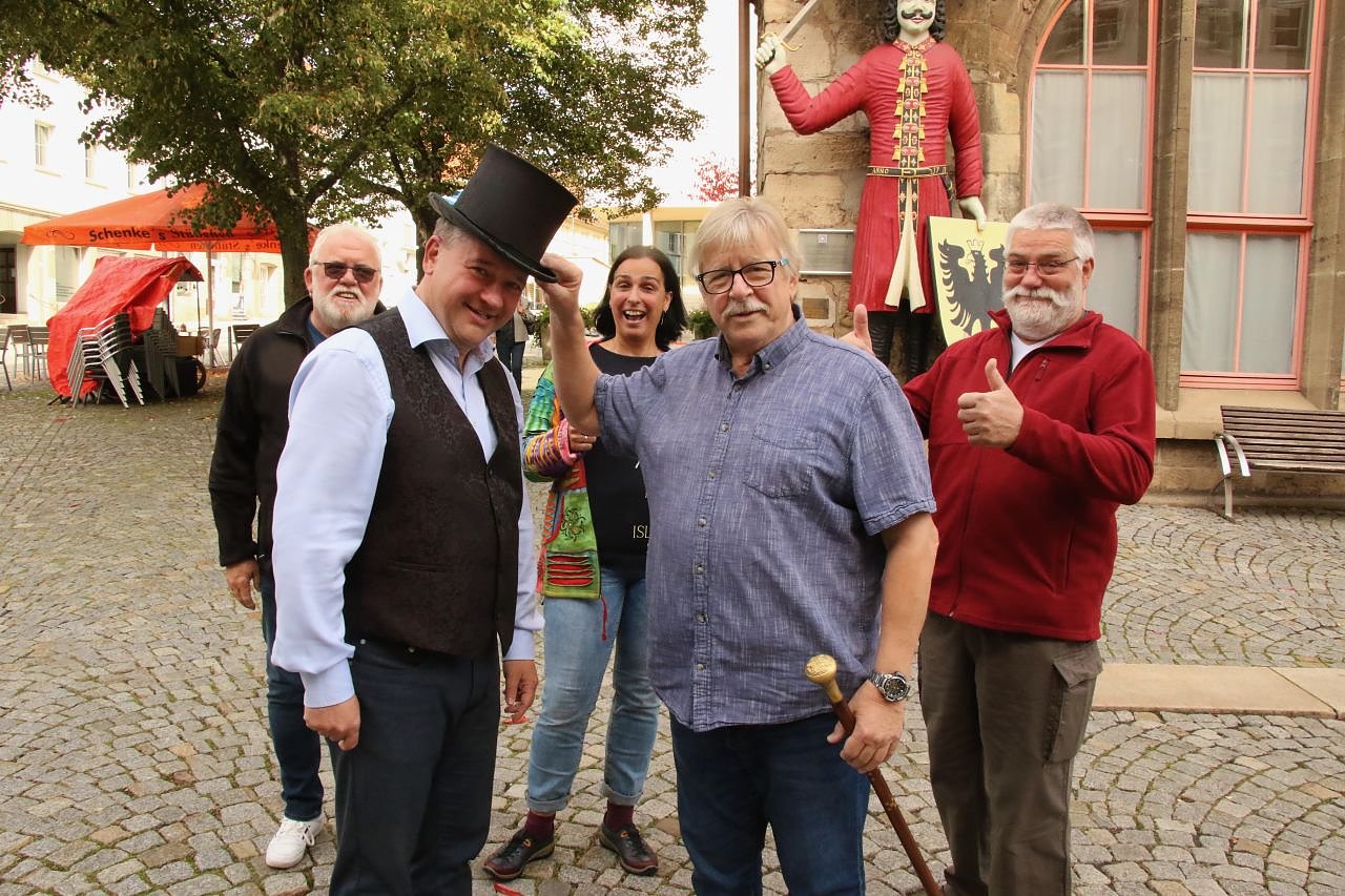 Ich wollte mich eigentlich auf den OB Posten bewerben, dafür hätte es sicher auch gereicht, aber ich habe das falsche Formular erwischt, sagt der frisch Gekürte. In Vorbereitung auf die neue Aufgabe habe er mit dem eingehenden Studium der historischen Quellen habe bereits begonnen, erklärt Müller weiter. Die Grundlagen des korrekten Zungenschlages habe er schon früh im Hause der Großeltern erlernt, für den nötigen Feinschliff ziehe er die Nordhäuser Schnurren zu Rate. Professor a. D. Winfried Schmitt, der dienstälteste Professor Nordhausens, der anlässlich des letzten Rolandsfestes seinen Ruhestand angekündigt hatte, zeigte sich so erleichtert wie begeistert ob der Wahl des guten Freundes. Man kennt sich bestens aus der Traditionsbrennerei, sei oft im Gespräch und so sei schließlich eins zum anderen gekommen. Der Zwanziger sei bei Müller in guten Händen, sagt Schmitt bei der Übergabe der Insignien, man habe die beste Wahl getroffen.