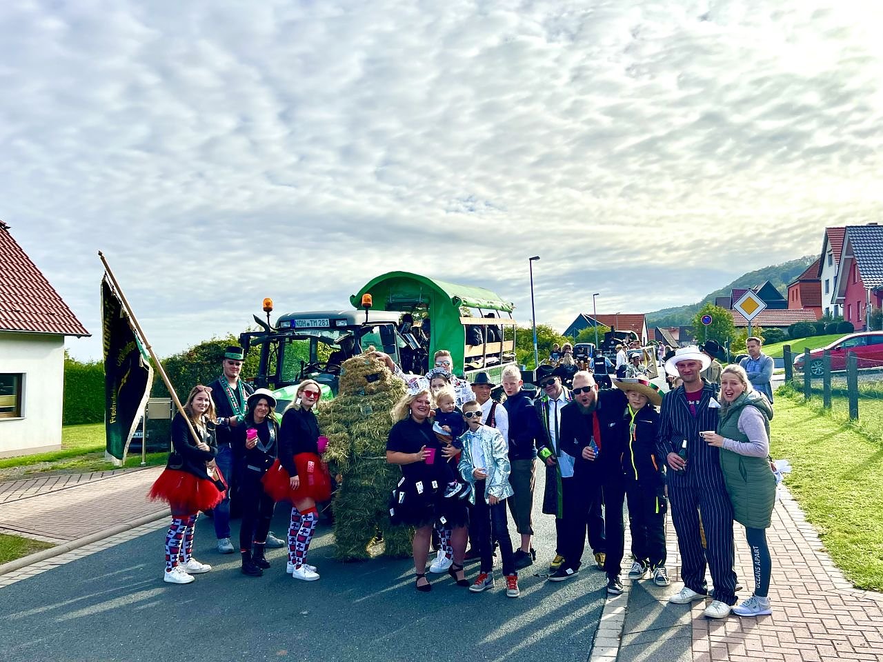 Am Sonntag schob sich dann unser Umzug mit mittlerweile über 100 Teilnehmern durchs Dorf an den vielen Trink-u. Essständen vor den Häusern vorbei.