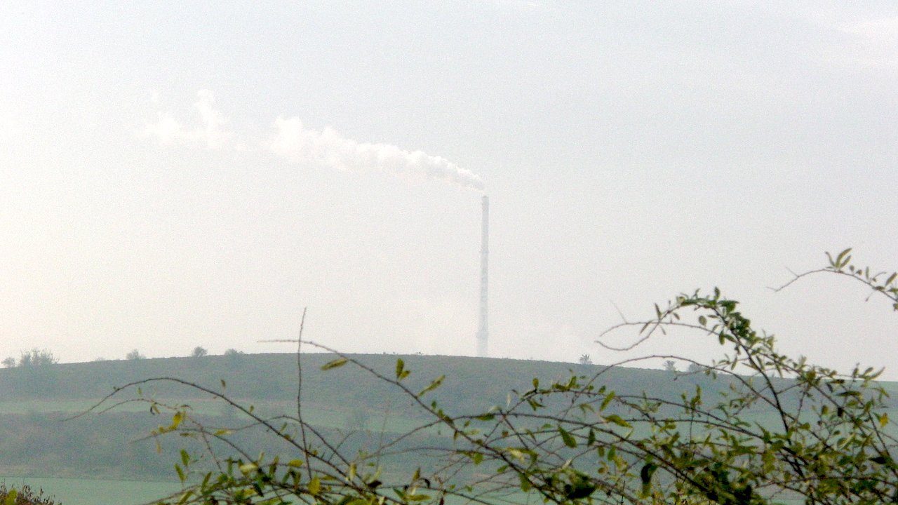 Der Schornstein des Romonta-Werks in Amsdorf im Nebel beim 12. Südharz-Hunderter im Oktober 2011. Er ist für die Wanderer nach Halle etwa vom Süßen See bis zum Ziel, also rund 20 Kilometer, sichtbar. Erst von Westen, dann, wie hier von Norden und schließlich von Osten aus. (Foto: B.Schwarzberg)