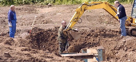 Der heutige Bombenfund wurde von Dieter Volkmer und Andreas West gesichert mit Schlupfseilen, damit er nicht in den Graben fallen kann. Die Bombe sollte ausgegraben und mit Hilfe des Baggers neben die Baugrube gelegt werden. Dann wollen die Männer eine Raketenklemme um den gesäuberten Zünder legen. Spannbacken halten den gefährlichen Teil fest. Zwei ferngezündete Patronen drehen ihn heraus, zumindest wenn er nicht zu fest sitzt. Sonst müssen die Sprengmeister mit einer größeren Rohrzange ran. Der Zünder sei nicht gefährlich, solange man nicht von vorn dagegen schlage, versicherte Andreas West. Ein Mann habe mehr Kraft als die Raketenklemme, auch sei die Hebelwirkung bei der Zange größer. Die Bombe sprengen, das wollen die Männer nach Möglichkeit nicht.