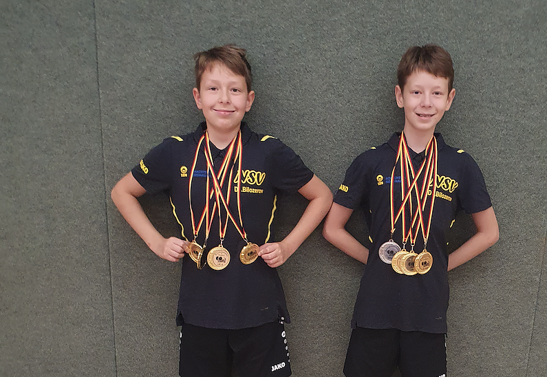 In der Altersklasse 13 setzte sich Denis Bilozerov gegen seine vier Kontrahenten durch und sicherte sich den Titel. In der AK 15 holte er sich nach einem spannenden Finale gegen seinen Bruder Daniel ebenfalls den 1.Platz. Zusammen triumphierten sie auch in der Doppelkonkurrenz dieser AK. Das Meisterstück gelang beiden dann in der AK 19. Hier gewannen sie zunächst gemeinsam den Doppeltitel und dann konnte sich Daniel Bilozerov auch noch den Einzeltitel dieser AK gegen Emil Gorny von Hydro Nordhausen holen. Beide blieben über den Tag in allen Konkurrenzen ohne Niederlage.
