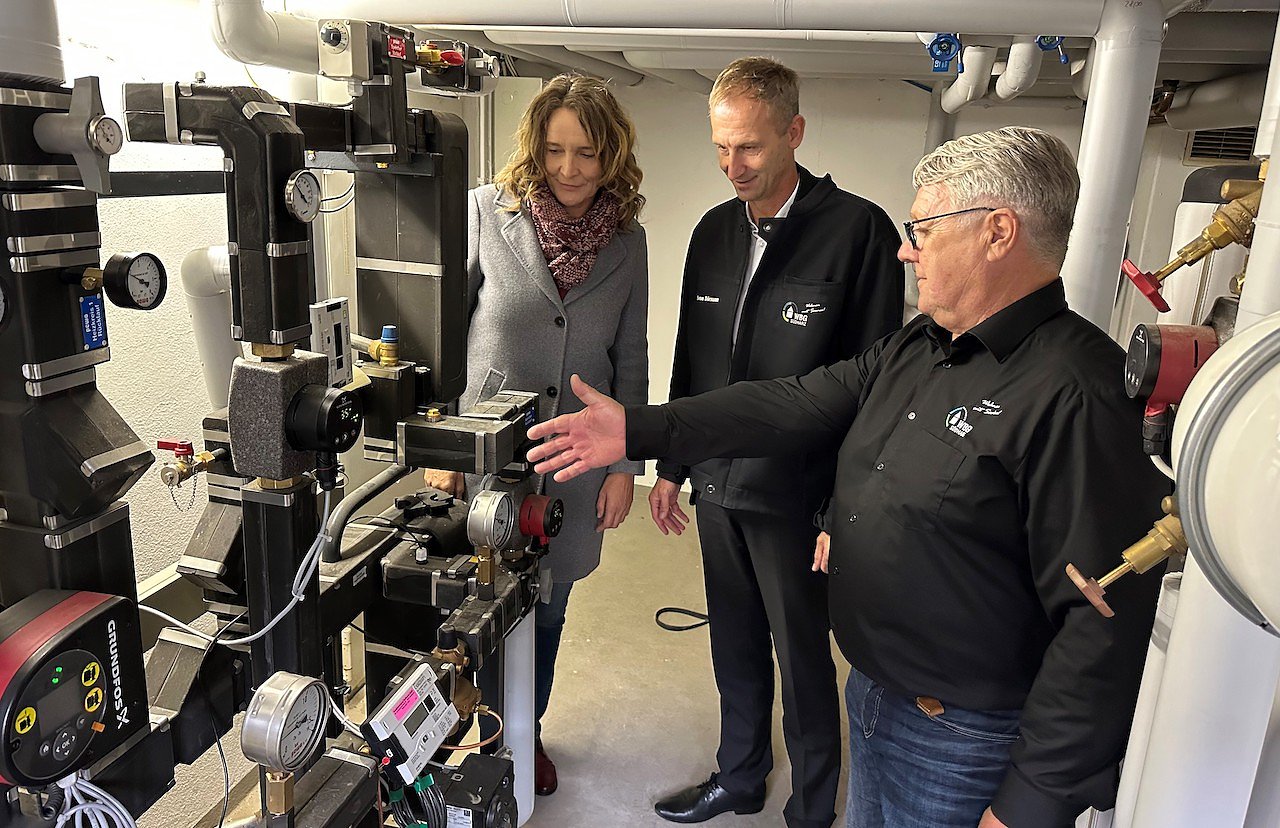 Nach der Inbetriebnahme einer neuen Fernwärme-Hausanschluss-Station in der Baltzerstraße bedankten sich der WBG-Vorstand sowie der zuständige Projektleiter der WBG Südharz, Jörg Dietrich, bei einem Vororttermin bei EVN-Geschäftsführerin Jana Zöller für das konstruktive Miteinander.
