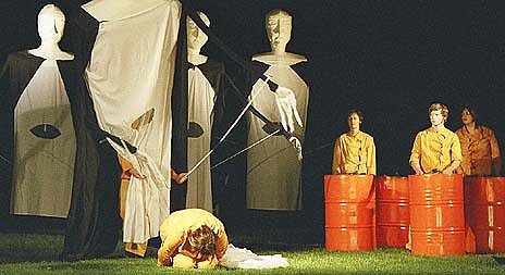 Es wird Licht ins Dunkel gebracht, das Unterste nach Oben gekehrt. Sie fackeln nicht lange und schlagen den Takt ihrer Füße zum Tanz auf dem heißen Pflaster. Wer in das Feuer bläst und die Glut anheizt, der bringt auch den Zorn der Götter zum kochen. Wie die Rache der Götter auf die Menschen hernieder fährt und welche grausame Strafe Prometheus ereilt, das wird in opulenten Bildern des Straßen- und Feuertheaters und Großpuppenanimation gezeigt.