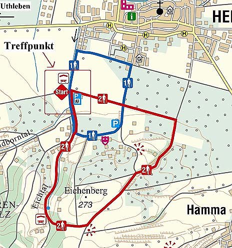 Anfang und Ende der Strecken ist der gut Ausgeschilderte Wanderparkplatz am Eichentalsweg in Heringen. Man findet ihn aus Richtung Uthleben kommend, erste Abfahrt rechts und aus Heringen in Richtung Uthleben, letzte Abfahrt links (gegenüber ehemals Brand Entsorgungstechnik). Für das leibliche Wohl zur Eröffnung ist gesorgt.