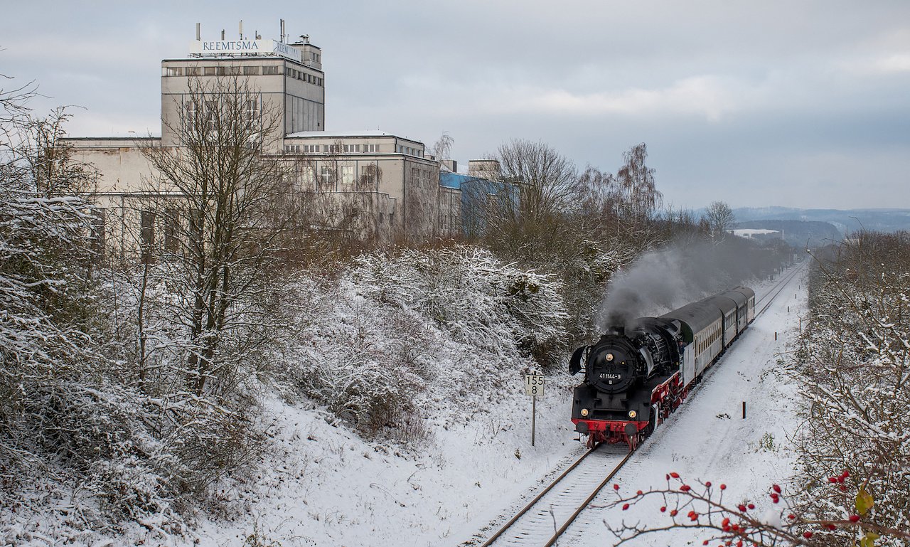 Sein Text zum Foto lautet:Hier eine Aufnahme der 41 1144 der IGE Werrabahn mit einem Sonderzug auf Harzrundfahrt bei der Nordhäuser Tabakfabrik. Der Zug verkehrte am 02. Dezember 2023 von Halberstadt aus einmal rund um den Harz."