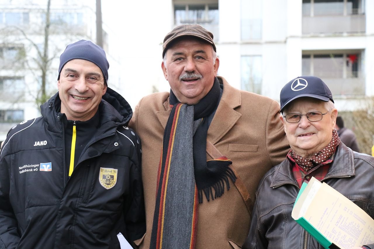 Vier Jahrzehnte und rei Organisatoren, v.l.: Gunnar Haase vom LV Altstadt, der ehemalige Schulsportkoordinator Werner Hütcher und sein Vorgänger, der ehemalige Kreisturnrat Klaus Meyer (Foto: agl)