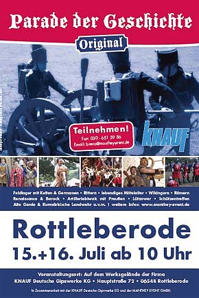 Neu hinzugekommen, zu den bereits erwähnten Vereinen und Interessengruppen sind bei "PARADE DER GESCHICHTE", am 15. und 16.07.2006 in Rottleberode, sind zum Beispiel der Verein für lebendiges Mittelalter e.V. Nordhausen "Medium Aevum Vitale", welcher das Mittelalter am Hofe erlebbar machen wird. Für das Artillerie-Biwak haben sich der Schützenverein Großlohra v. 1899 mit dem Füsilierbataillon Schwarzburg Sondershausen 1867, das 1. Garde-Regiment zu Fuß Preußen, Königlich-Preußische Freikorps von Lützow sowie die Preußische Landwehr (Kurmark und Schlesien). Weiterhin kommen mit ihren Geschützen Abordnungen verschiedener Traditionsgruppen der preußischen Artillerie, Generaloberst Wolf als Kommandeur des IV. Regiments der Fürstendivision (Rheinbund), der Napoleondarsteller Jürgen Standke aus Leipzig, zwei Musketiere des Mecklenburg-Strelitzer Infanterie-Regiments von 1788 sowie ein fränkischer Söldner mit Marketenderin aus der Zeit des Dreißigjährigen Krieges.