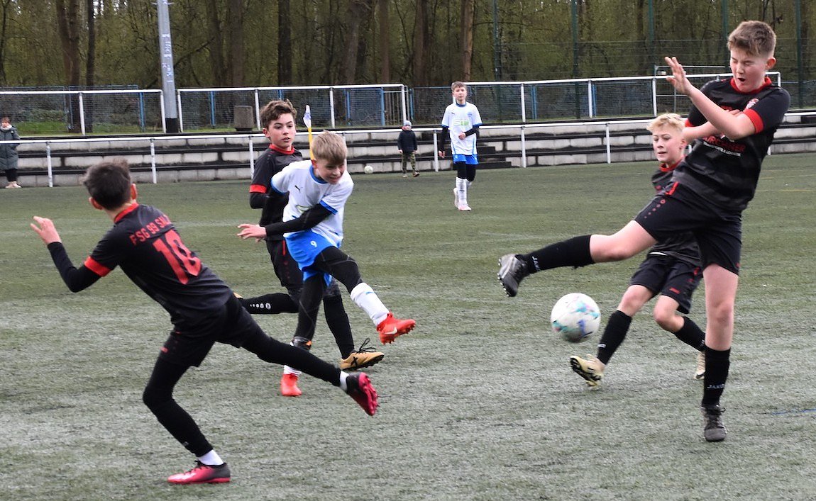 Schließlich steuerte Paul allein auf das FSG-Tor zu, schoss aber den Keeper in die Arme. In der 17. Minute gelang den Wackeren die nicht unverdiente Führung. Die Eingabe von Linus Schröter auf der rechten Seite nahm Liu Hillenhagen im Zentrum auf und sein Abschluss landete zur 1:0 Wacker-Führung im Tornetz. 3 Minuten später hatte Linus das 2:0 auf dem Fuß, traf das Leder aber nicht richtig und der Salza-Keeper konnte den Ball sicher aufnehmen. Während Cederic Ostmann in der 23. Minute mit seinem Torabschluss am Salza-Torwart scheiterte, machten es die Salzaer 3 Minuten später besser. Sie setzten sich auf der rechten Angriffsseite durch und die Eingabe konnte Noah Findeisen zum 1:1 Ausgleich ungehindert im Wacker-Tor unterbringen. Die erste Spielhälfte war durch viele unnötige Fehlabspiele der Wacker-Spieler, schon aus der Abwehr heraus, gekennzeichnet. Dies müsste sich im zweiten Spielabschnitt verbessern.