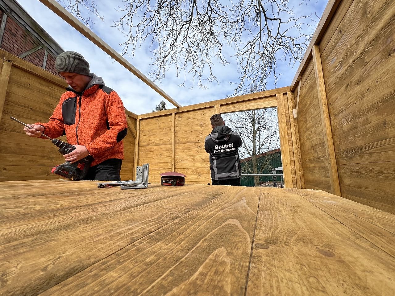 Der Bauhof der Stadt Nordhausen ist derzeit an vielen Stellen in der Stadt und den Ortsteilen aktiv. Beim aktuellen Projekt handelt es sich um die Erneuerung des kleinen Schießstands auf dem Festplatz in Steigerthal...