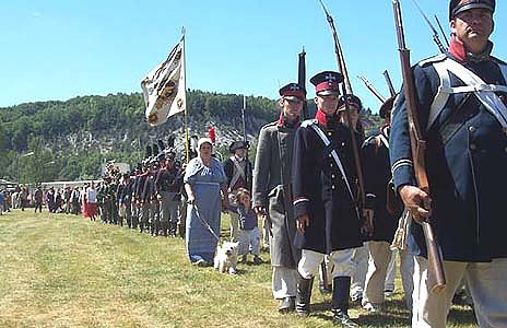 Zum Beispiel wurden militärische Darstellungen - von Uniform, Lagerleben, Waffenkunde bis hin zum Kanonenschießen und Pulverdampf gezeigt. Hier sei erwähnt, dass aus über 30 Kanonen verschiedenster Größe und Bauart und zahlreichen Vorderladern mehrmals am Tage geschossen wurde. Nebenbei exerzierten die einzelnen Kompanien und präsentierten den Besuchern das Leben dieser Zeit in authentischen Feldlagern. Ein besonderer Höhepunkt waren die Märsche der Alten Garde Bleicherode, der Kurmärkischen Landwehr und weiteren Gruppierungen, die den Besuchern in originalgetreuen Uniformen, Kleidern und Trommelklängen die Geschichte der preußischen und napoleonischen Zeit näher brachten.