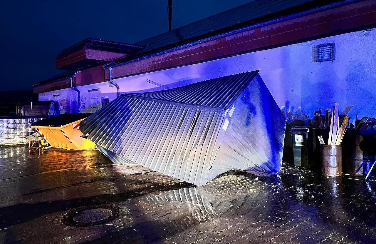 In Heringen wurde ein Gartenhäuschen, sprichwörtlich vom Winde verweht, dieses landete auf dem Parkplatz eines Einkaufsmarktes.