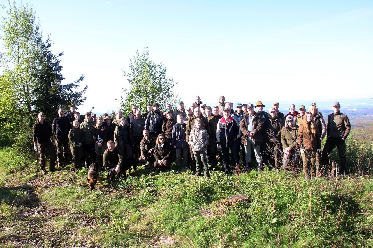 Im Ausbildungsrevier der Jagdschule im Ellricher Stadtwald trafen sich ortsansässige Jäger aus befreundeten privaten Revieren, derzeitige Jagdschüler, Mitglieder der Interessengemeinschaft Rotwild und des Harzklubs Ellrich sowie Unternehmer des Landkreises und Naturfreunde.