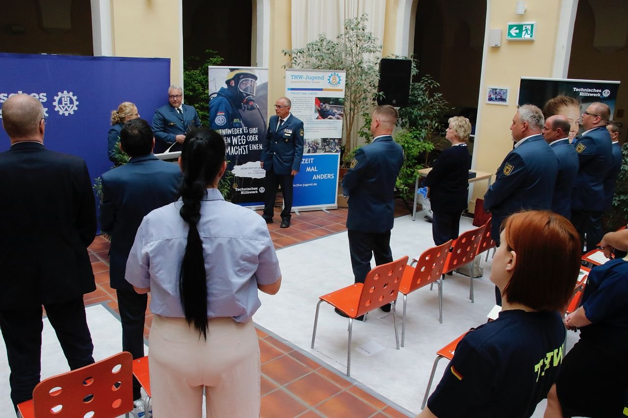 Zur Ehrung von Marco Fritschka, der solange dabei ist, wie es das Nordhäuser THW gibt, erhob sich der Saal (Foto: agl)