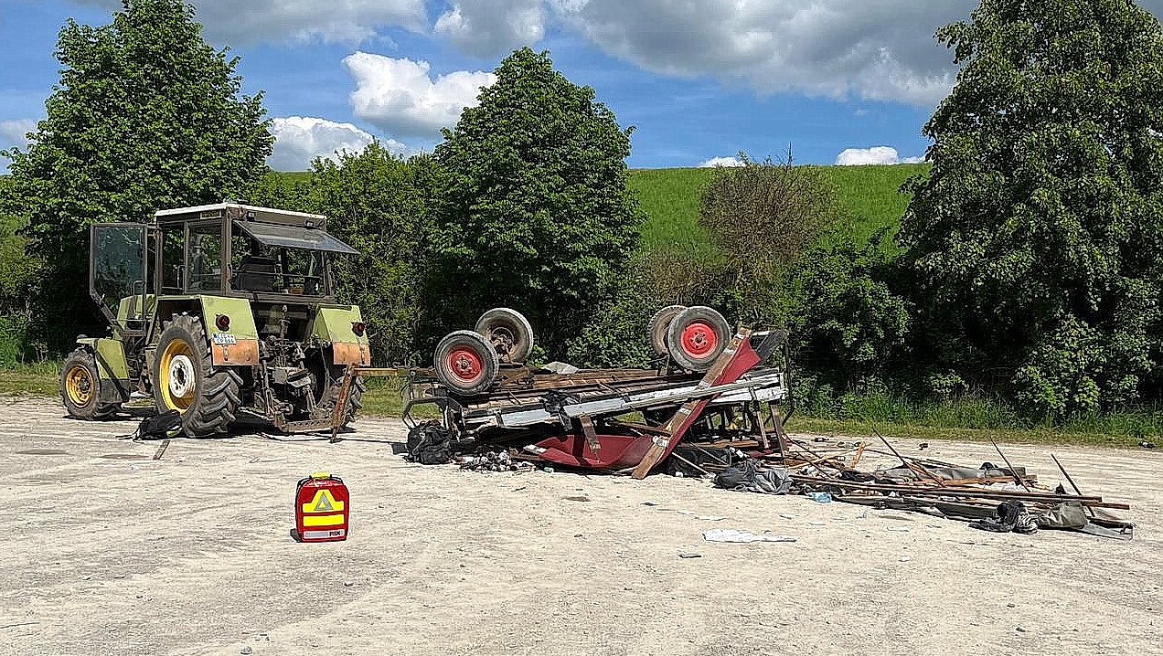 Bei einem Tagesausflug kam es zu einem folgenschweren Verkehrsunfall mit einem Fahrzeuggespann. Bei einem Wendemanöver eines 22-jährigen kippte der Anhänger, welcher mittels Traktor gezogen wurde um, sodass 13 Fahrgäste verletzt wurden, welche sich auf dem Anhänger befanden. Eine Person wurde so schwer verletzt, dass sie intubiert werden musste und mit dem Rettungshubschrauber verflogen wurde