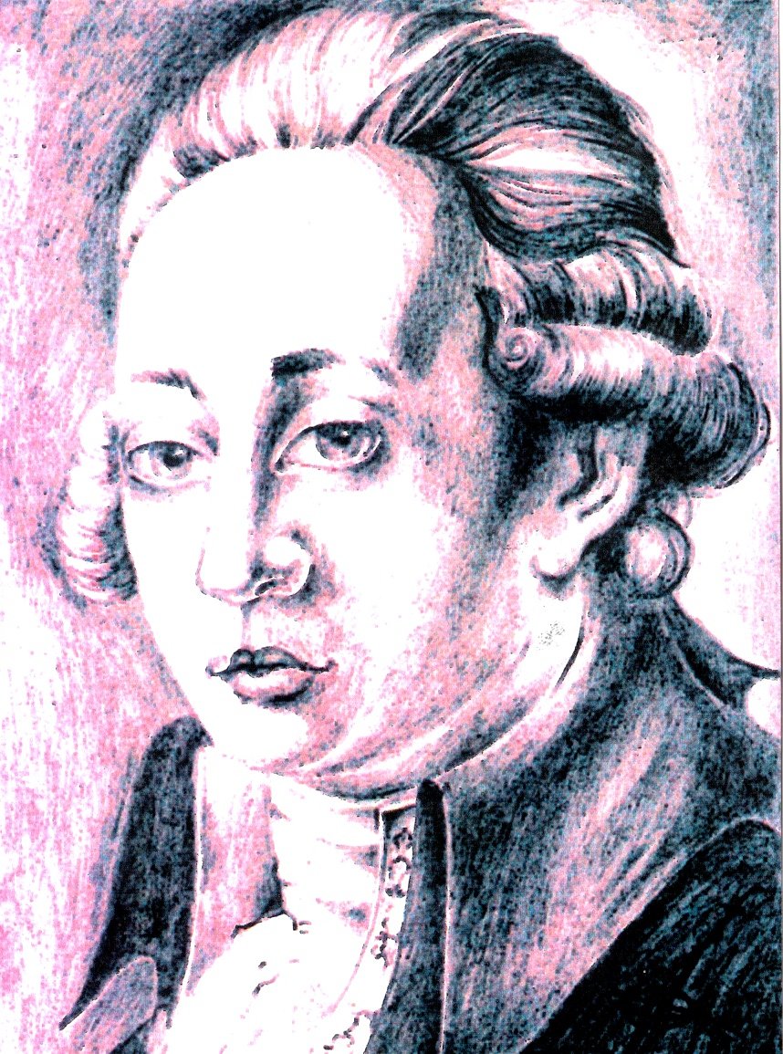 Karin Kisker, farbiges Porträt Fr. A. Wolfs nach dem Kupferstichporträt: FR. AUG. WOLF. Professor zu Halle von Daniel Beyel, (1760-1823), Schweiz – (Foto: Quelle Beiträge zur Heimatkunde … Nordhausen … 12/87)