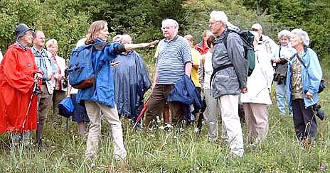 "Durch die Pflege mit Schafbeweidung haben sich diese Schmetterlingslebensräume in den letzten Jahren hervorragend entwickelt". Fast eine Stunde erläuterten Naturkenner aus der Region hier die Pflanzen- und Tierarten. Jedoch auch hier ist nicht klar, wie lange Kaisermantel und Golddistel noch zu bewundern bleiben, denn auch in die Kuppe des Röseberges, die zu Thüringen gehört, schieben sich vom Westen her schon Gipssteinbrüche.