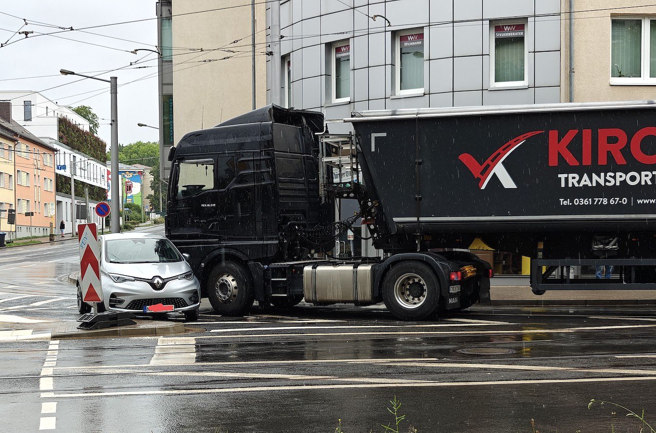 An der Kreuzung des August-Bebel-Platzes und der Töpferstraße stieß am Donnerstagabend in Nordhausen ein Lastkraftwagen mit einem Auto zusammen...