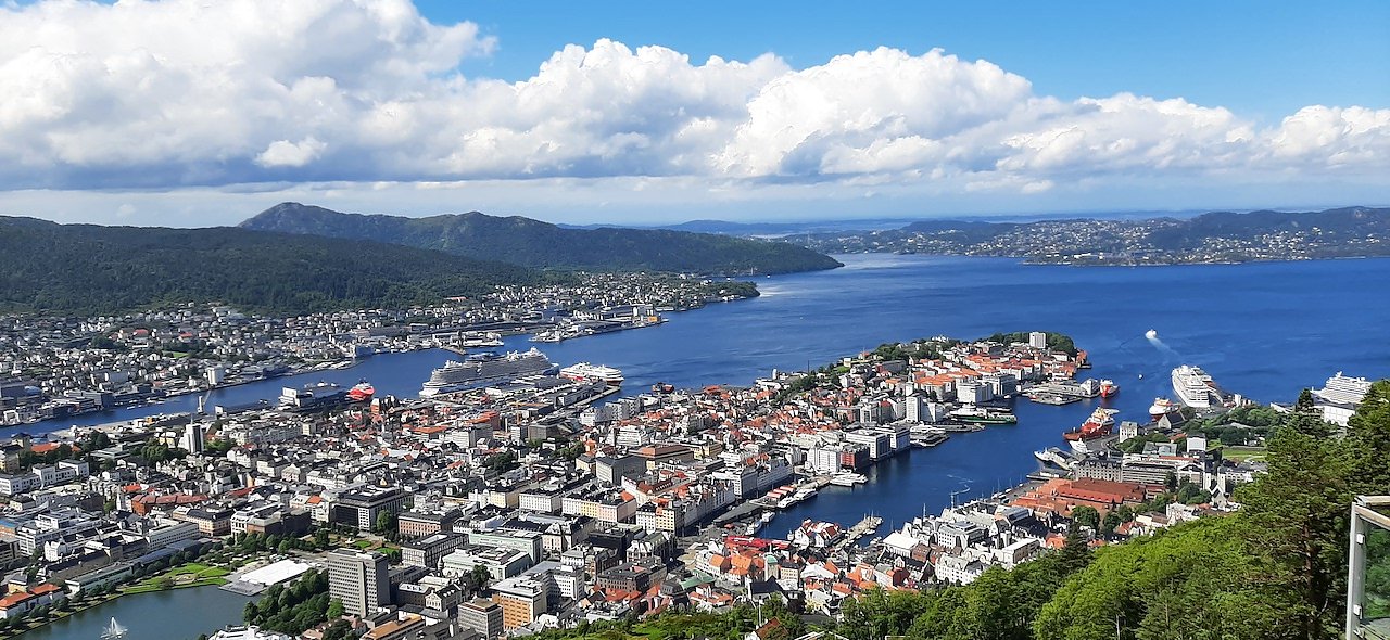 - Foto 2: Der Blick vom Bergplateau des Fløyen in Bergen/Norwegen.