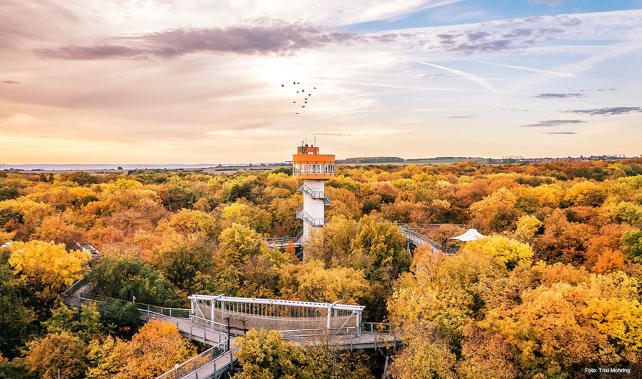 Die herbstliche Farbenpracht des Nationalparks Hainich lässt sich vom Baumkronenpfad aus am besten bestaunen. (Foto: © Trixi Mohring)