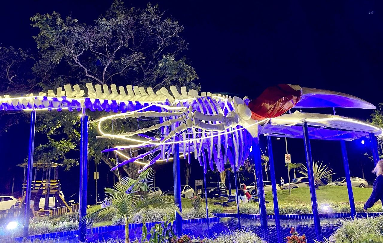 Folgender Text erreichte uns: Momentan lebe ich in Ubatuba Sao Paulo, in Brasilien, hier wird auch Weihnachten gefeiert. Der Wal ist leider vor einigen Jahren in Ubatuba gestrandet und konnte nicht gerettet werden. Jetzt ist sein Skelett vor dem Aquarium zu bestaunen. Zur Zeit mit Weihnachtsmütze. Viele Grüße nach Deutschland.