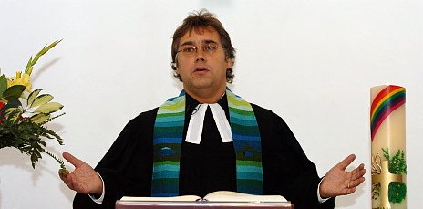 Pfarrer Joachim Kruse machte sich mit seiner Predigt zum Thema Abschied und Neubeginn auch selbst Mut. Er läßt eine funktionierende Gemeinde und eine schöne Kirche mitten in der Stadt zurück. Besonders im Jahr 2004 hatte er die einmalige Möglichkeit, die Kirche einer breiten Öffentlichkeit vorzustellen. Sie war der Ort der Stille und Begegnung auf der Landesgartenschau. In diesem Jahr bot Frauenberg mit den Fußball-Länderfesten etwas besonders. Als Studentenpfarrer für die Fachhochschule hat sich Joachim Kruse immer wieder was einfallen lassen, was junge Menschen interessiert. Auch Filmnächte und Trommelkurse gehören dazu. Der Gemeinde fällt es also nicht leicht, den Pfarrer und seine Familie gehenzulassen. Superintendent Michael Bornschein bedauerte den Weggang.