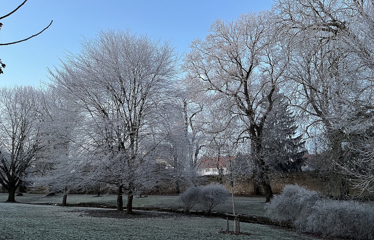 Niederschlagsfrei. In der zweiten Nachthälfte in Tälern und Senken gebietsweise Nebelbildung. Örtlich Reifglätte. Minima -9 bis -15, in Tälern des Berglandes bis -20 Grad. Schwachwindig.