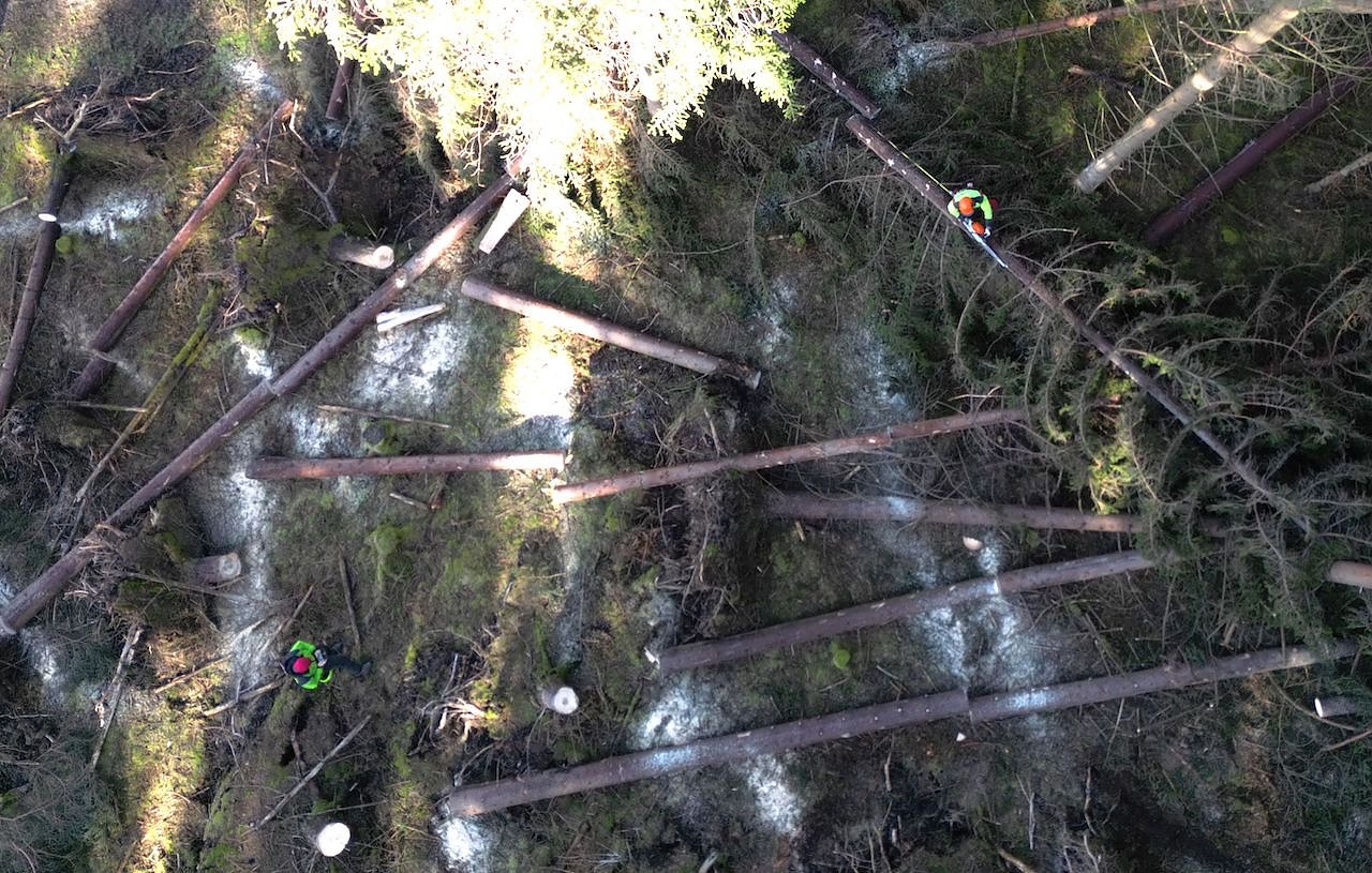 Die Waldarbeit gehört, neben dem Bausektor, zu den gefährlichen Berufsfeldern. Allein 2023 waren es deutschlandweit etwa drei Dutzend tödliche Unfälle, einige davon auch in Thüringen. Die Profis der ThüringenForst-AöR oder auch Forstunternehmer organisieren die Arbeit mit der Motorsäge in Zwei-, besser noch Dreimanngruppen.