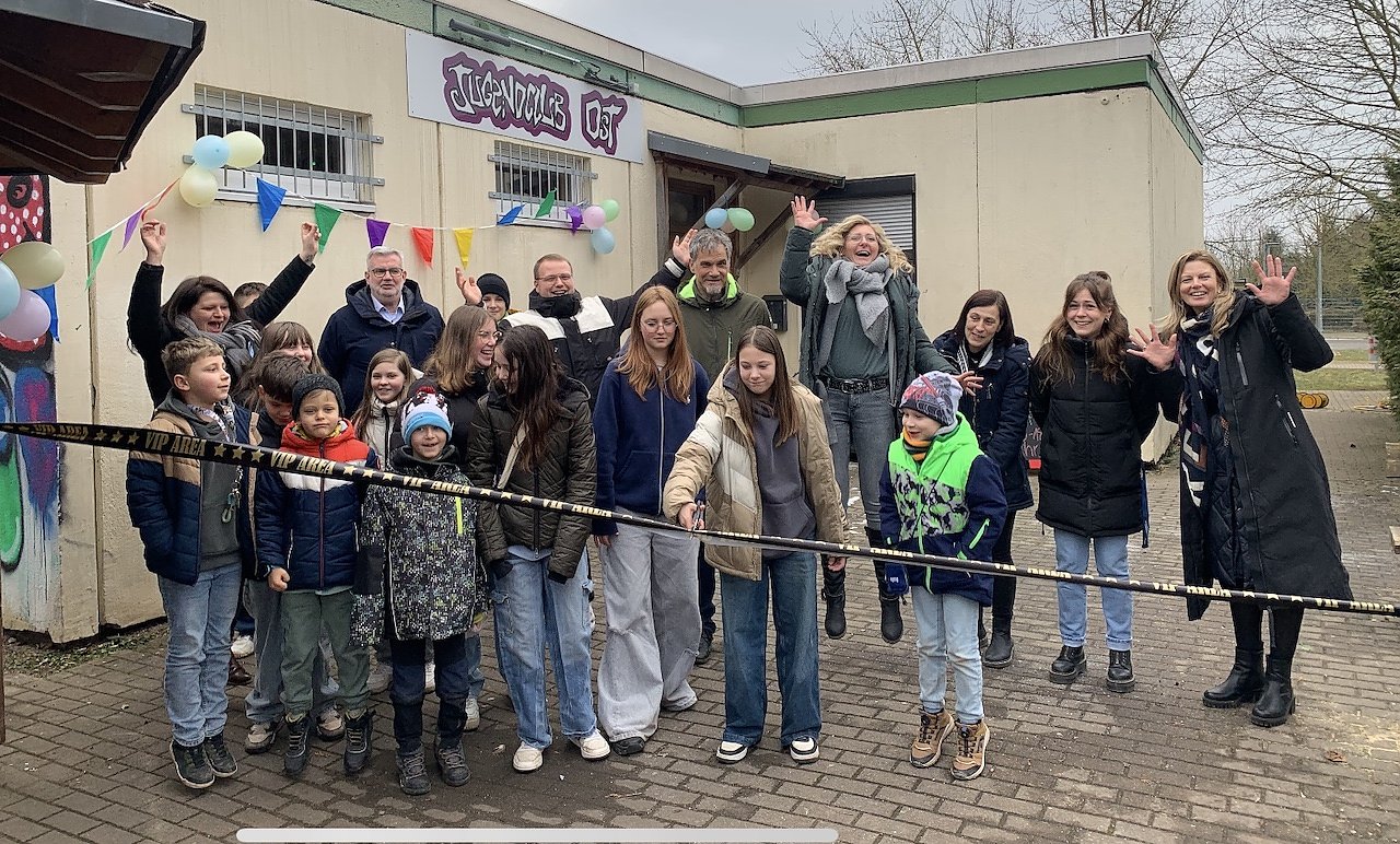 Im Anschluss schnitten die Kinder- und Jugendlichen gemeinsam mit ihren Sozialarbeitern die Schärpe zum Jugendzentrum durch und konnten dieses nach den Umbaumaßnahmen zum ersten Mal wieder betreten. Zu Heißgetränken, Brause und Kuchen wurden der neu gestaltete Kindertreff und das renovierte Jugendcafé erkundet. Gleich mehrmals gaben die Mitarbeitenden der Projekte Führungen durch die neu gestalteten Räumlichkeiten. Die wohl größte Neuerung ist die räumliche Fusion beider Projekte.