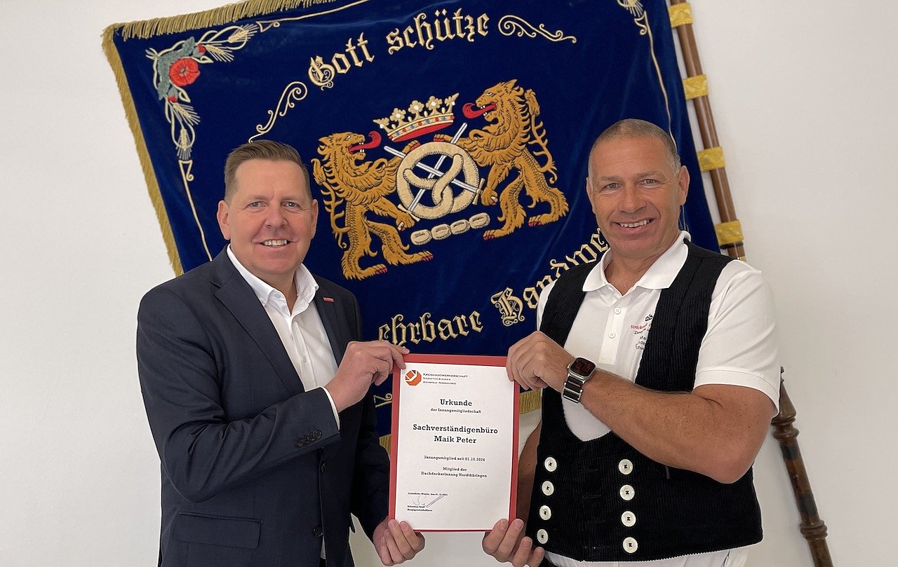 Der vereidigte Dachdeckermeister Maik Peter ist öffentlich bestellter Sachverständiger des Dachdeckerhandwerks im Kammerbezirk Erfurt und neues Innungsmitglied der Dachdeckerinnung Nordthüringen...