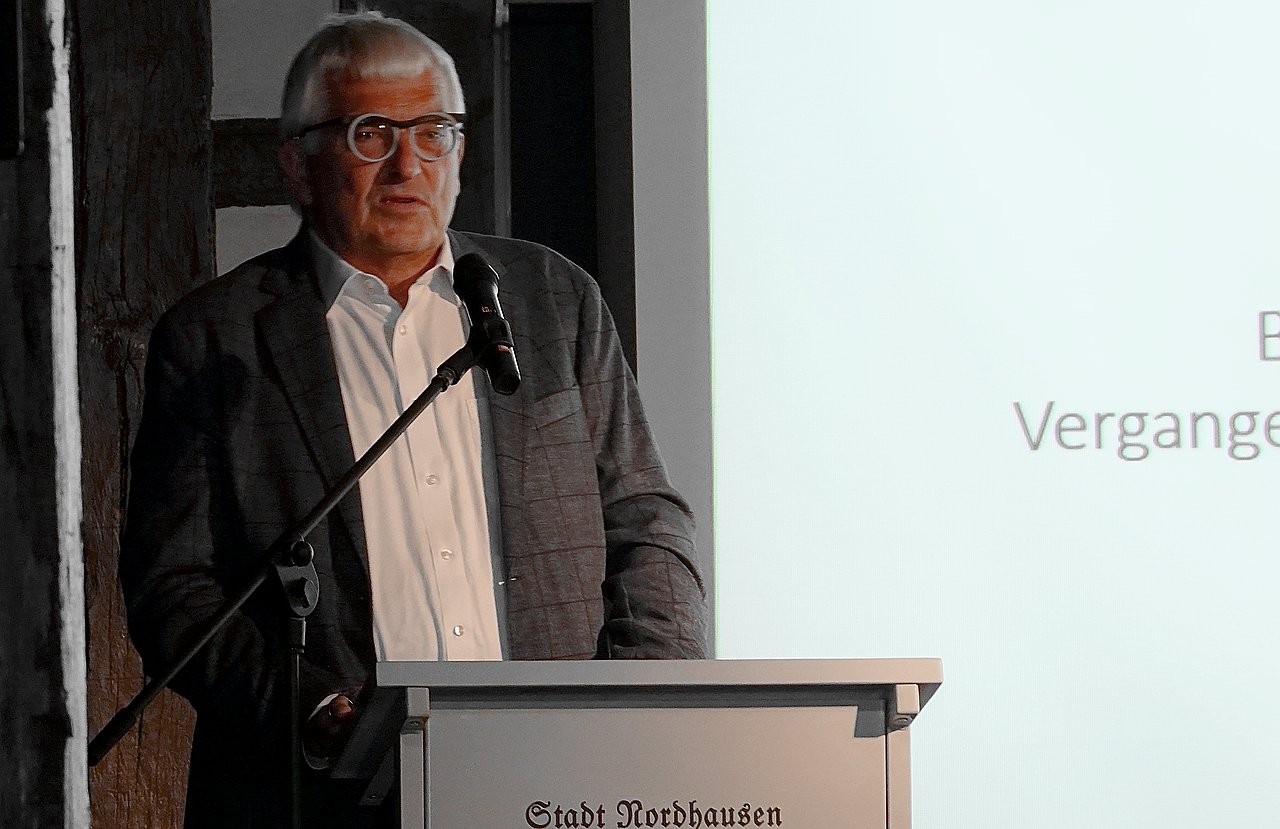 Nach den Worten des Nordhäuser Oberbürgermeisters, insbesondere zur Gegenwart und Zukunft des Museums, erinnerte der ehemalige Kulturdezernent und Bürgermeister, Klaus Wahlbuhl, an die Anfänge des Jahres 1995 und dankte Investor Andreas Lesser für sein Engagement.