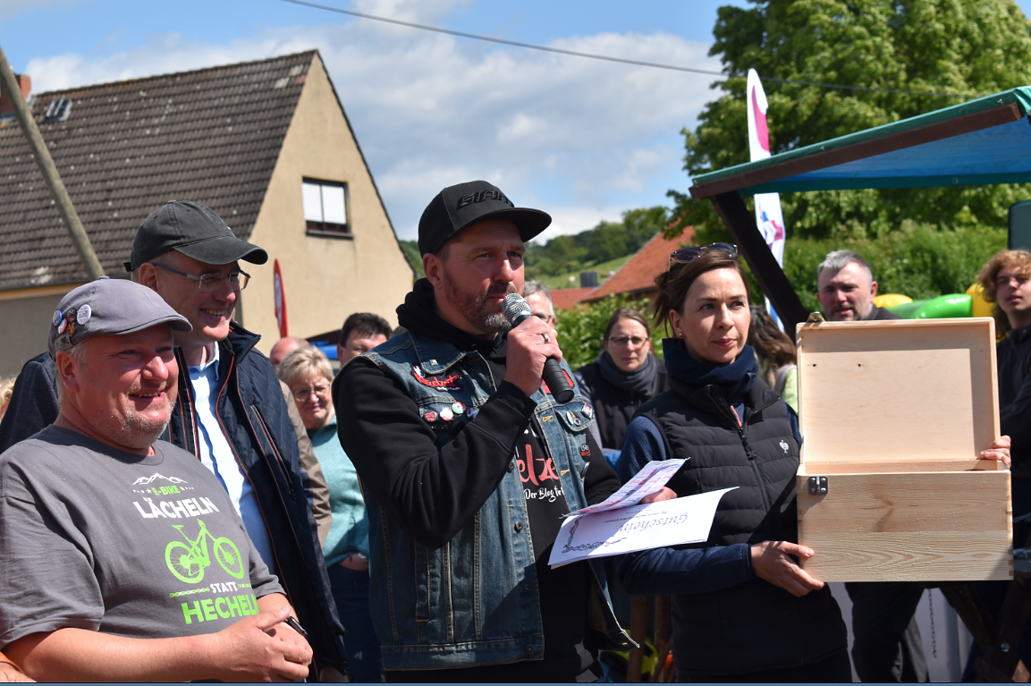 Zur Familienradtour,, Natour", welche die Goldene Aue am 18. Mai zu einer Pilgerstätte für Radfahrer aus der gesamten Region werden ließ, wurde zur Abschlussveranstaltung in Auleben ein vollgefedertes Mountainbike verlost...