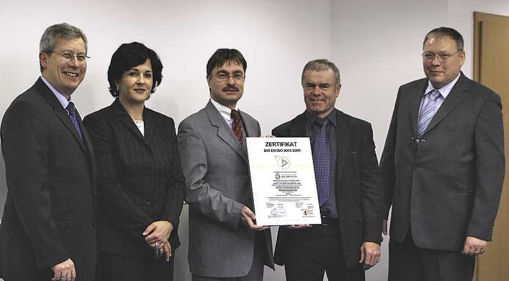 Autor: nnzDie Stadtwerke-Geschäftsführer Mathias Hartung und Arndt Forberger konnten heute aus den Händen der DEKRA-Beauftragten Guido Schönk und Achim Burmeister das Zertifikat nach DIN EN ISO 9001:2000 entgegennehmen.