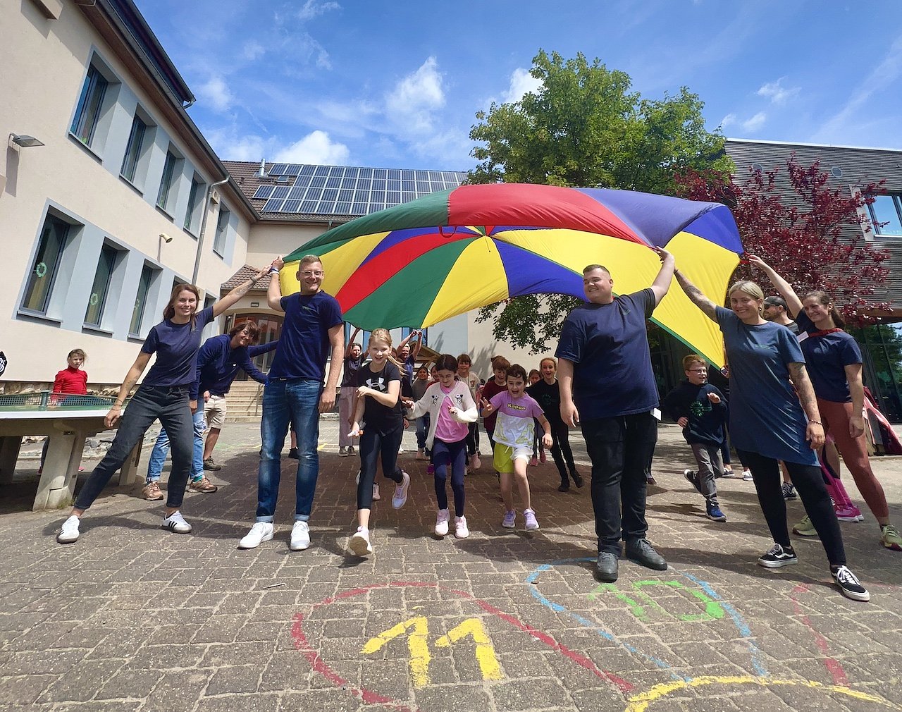 Auf dem Schulgelände erwartete die Kinder ein buntes Angebot mit Kinderschminken, Bastelstationen, Tischtennis und eine Slackline, die sich schnell zum Publikumsliebling entwickelte, sowie vieles mehr. Besonders sportlich wurde es beim Fußball- und Handballturnier, bei dem Einsatz, Teamgeist und ganz viel Spaß im Vordergrund standen.