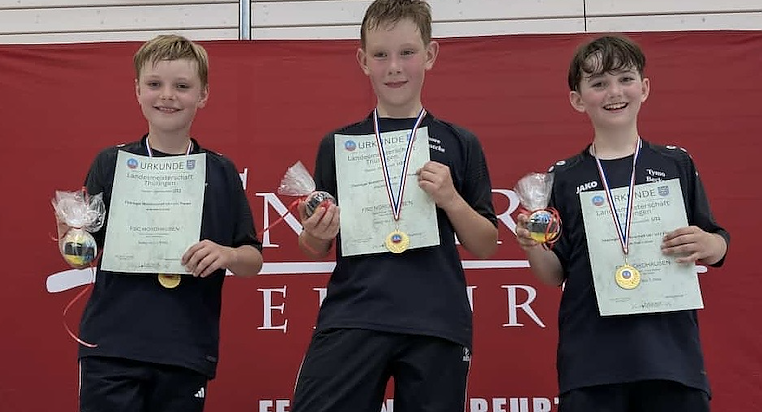 Tim Förster und Ben Langbein werden 8. und 11. Im sich anschließenden Mannschaftsfechten hatten die Nordhäuser wegen der guten Einzelergebnisse in der ersten Runde ein Freilos. Im Halbfinale wurde das Team vom SV Altenburg mit 45:20 Treffern souverän besiegt Im Finale zeigten Thore, Tim und Tymo ganz starke Leistungen und sicherten sich gegen das Fechtzentrum Erfurt mit 45:41Treffern den Thüringer Landesmeistertitel. Das war für die Jumgs ein perfekter Saisonabschluss.