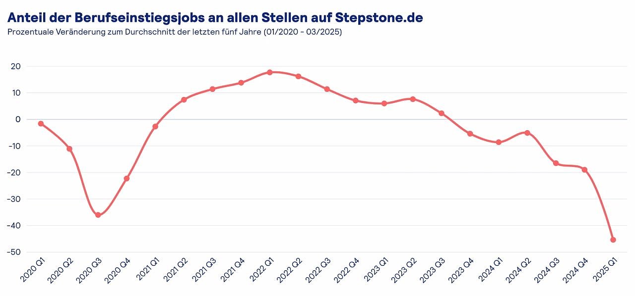 Der Einstieg ins Berufsleben erfordert derzeit viel Geduld, wie eine aktuelle Stepstone-Analyse von über vier Millionen Stellenanzeigen von Januar 2020 bis April 2025 zeigt...