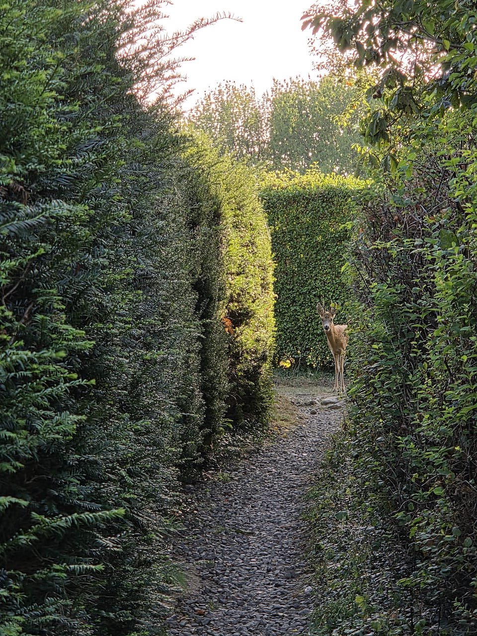 Haben an unserem Ankunftsabend auf Bornholm einen Abstecher ans Meer unternommen. Dabei entdeckten wir einen Schleichweg, der uns hoch zu unserem Ferienhaus führen sollte. Jedoch wird der scheinbar auch von diesem Reh genutzt. Als wir uns mittig in dieser Rinne befanden, versperrte uns ein junges Reh den Ausgang. Sowohl das Tier als auch wir, waren für eine Weile ratlos. Wir machten uns deshalb dünn, damit es vorbei konnte. Es hatte ja die älteren Rechte! Nein.