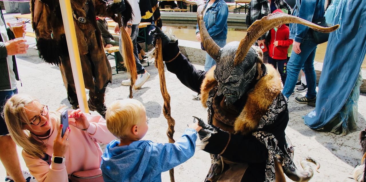 Sieht gruselig aus, ist aber eine einheimische Sagengestalt aus dem Harz - zum Bibliotheksfest in Nordhausen drehte sich heute alles um das Mittelalter und seine alten Geschichten, Myhten und Legenden (Foto: agl)