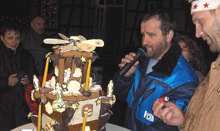 Ein weiteres Highlight war, wie jedes Jahr, die Versteigerung einer selbstgebackenen Lebkuchenpyramide vom ortsansässigen Bäcker. Viele Bürger boten dabei kleinere und größere Beträge. Am Ende wurden 450 Euro für diese Pyramide gesammelt/ersteigert.