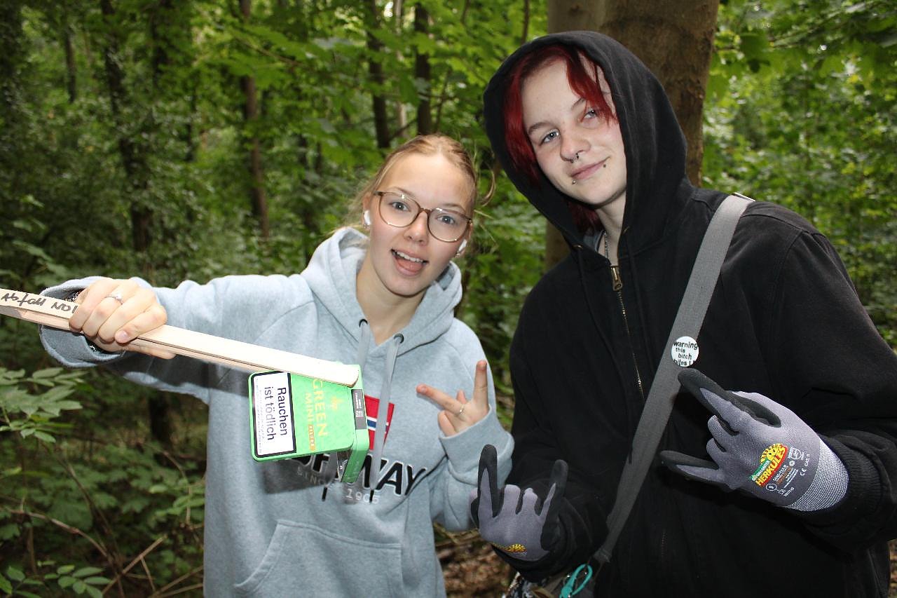 Bis hinauf zu den Tiefen des Geheges und entlang des Zorgeufers im Stadtpark sollte es gehen. Und sie wurden fündig – leider mehr, als ihnen lieb war. Insgesamt sammelten die Jugendlichen nicht nur unzählige Zigarettenstummel und Verpackungen, sondern auch jede Menge kuriosen Müll: 46 kleine Jägermeisterflaschen, ein halbes Fahrrad in Einzelteilen und weitere fragwürdige Fundstücke, die definitiv nicht in die Natur gehören.
