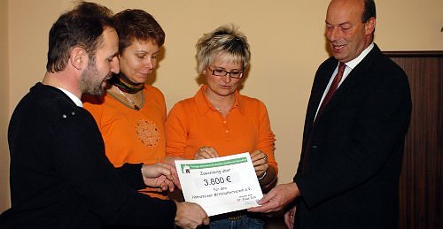 Der Hohnsteiner Mittelalterverein bekam heute 3.800 Euro aus Lottomitteln von Landrat Joachim Claus überreicht. In Vertretung von Minister Klaus Zeh gab er den Bescheid weiter. Die Fördermittel sind zweckgebunden für den Kauf von Baumaterial zur Sanierung einer mittelalterlichen Treppenanlage. Der Landrat als Burgeigentümer freute sich über die erfolgreiche Sanierungsarbeit des Mittelaltervereins und ließ sich über die Veranstaltungshöhepunkte des nächsten Jahres aufklären.
