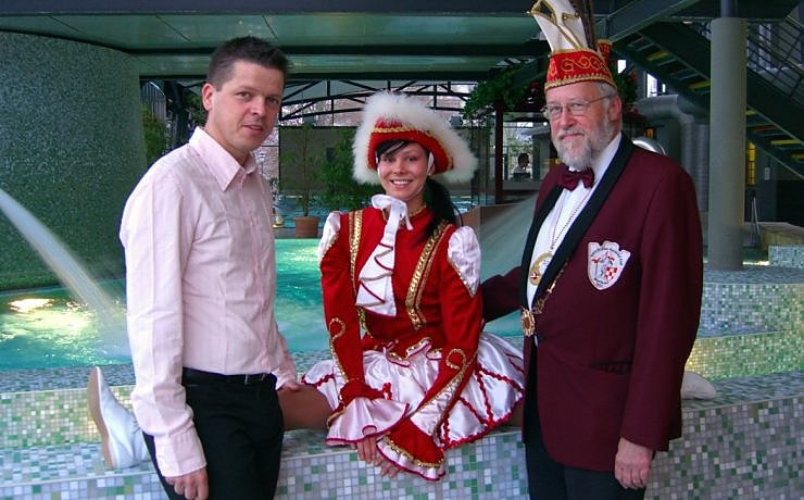 Eine Zusammenarbeit beschlossen in den letzten Tagen des Jahres das Team des Badehauses und der Bleicheröder Karnevalsverein. So wird das Badehaus, wie auch schon in den vergangenen Jahren, die Kindergruppe der Karnevalisten unterstützen. Zusätzlich erhalten alle Gäste der Festsitzungen die Möglichkeit, das Nordhäuser Familien- und Erlebnisbad zu einem besonders preiswerten Jeckentarif zu nutzen. Schon heute überzeugten sich der Präsident der Narren, Klaus Schweineberg, mit dem Mitglied der Funkengarde, Alexandra, von den optimalen Möglichkeiten im Nordhäuser Bad.