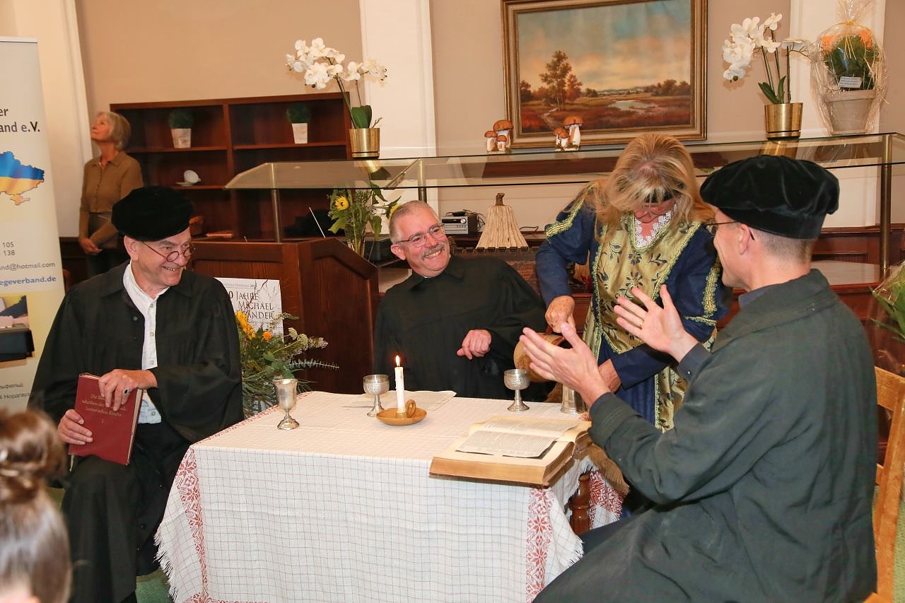 Ein Höhepunkt war das Theaterstück Neander oder die Ehre Gottes – Platzt Neander am Neanderplatz? unter der Leitung von Christine und Gregor Heimrich, das mit Witz und Tiefgang die historische Figur Neander in die Gegenwart holte. Im anschließenden Vortrag beleuchtete Tim Schäfer das reformatorische Schulmodell von Ilfeld und Neanders Vision von Bildung als Persönlichkeitsbildung in 15 Minuten- fundiert, geistreich und historisch verankert. Denn, es gab auch eine Fülle historischer Fakten zum Wirken Neanders schon ab 1541 im Kontext des damaligen Marienklosters Ilfeld zu erfahren.