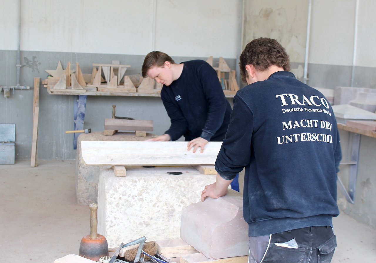 Während des Praktikums erstellen die Schüler unter Anleitung ihrer späteren Lehrausbilder einzelne kleine Produkte aus Travertin, die sie am Ende mit nach Hause nehmen können. Ein zusätzlicher Effekt ist, dass sie sich dadurch nach dem Praktikum noch bildlich daran erinnern können, was sie gearbeitet haben. Ausbildungsleiter Ricardo Schröder ist mit dieser Entwicklung sehr zufrieden und erfährt stärkere Nachfragen nach Ausbildungsplätzen als vorher. Berufsmessen und Schulmessen sind nach wie vor für die Berufsorientierung sehr wichtig, weiß er und glaubt, dass die Vielzahl der angebotenen Berufe den Horizont der Schüler erweitere und bei ihnen bei der Auswahl helfe. Für die Praktika denkt sich Schröder spannende und gut umsetzbare Projekte aus, um den Schülern Lust an der Arbeit zu vermitteln. Die Praktikanten sprechen sich auch in der Schule hinterher miteinander ab, wo es ihnen gefallen hat und wo nicht, erklärt Schröder und ist froh, dass er so viele unterschiedliche und interessante Tätigkeiten im Werk vorstellen kann.