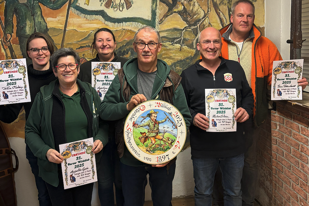 Letzten Samstag richtete der Osteröder Schützenverein sein traditionelles Harzer Wilddiebschießen aus. Bernd Fuhrmann (Bildmitte) holte sich zum dritten Mal in Folge erneut den Titel Harzer Wilddieb mit 49 Ringen...