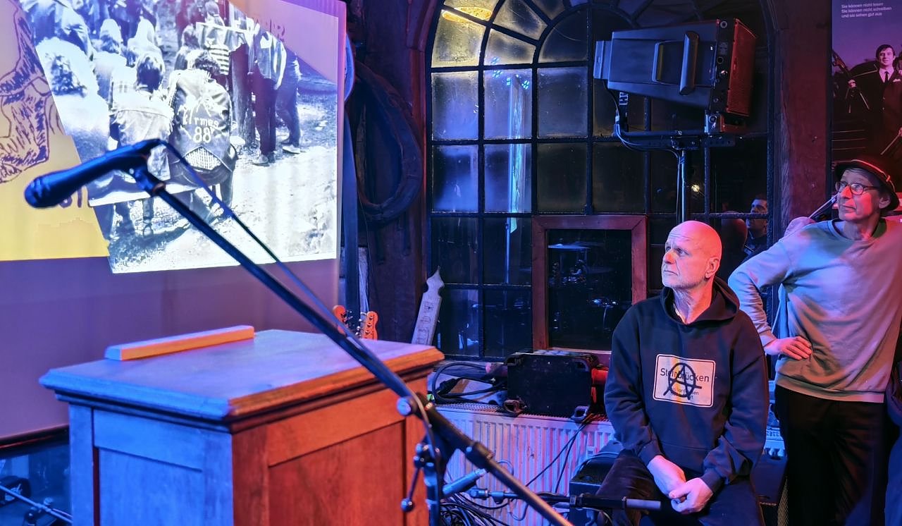 Und so wurde am Samstagabend an Aljoscha erinnert und der so aufregenden und gleichzeitig inspirierenden Zeit der 1990er Jahre gedacht. Wer eine Lesung von Flake Lorenz je erlebt hat, der erfährt Authentizität von dem Mann, der einst seinen Personalausweis verbrannte, weil er nicht in der BRD leben wollte.